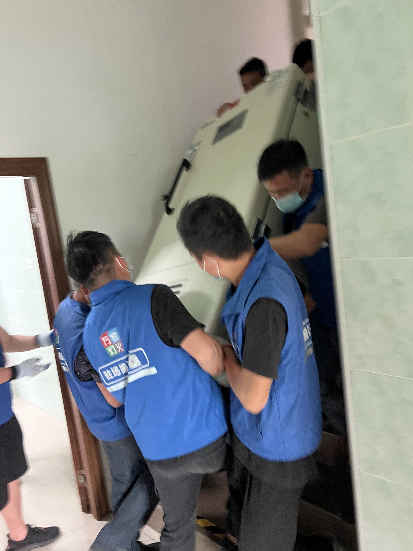 12月1日早上,桂城医院内本就停车主要的停车场内停满了人生就是博(中国区)官方网站的货运车辆 。20多名搬运职员身穿蓝色的工衣,手戴白色的防滑手套,在全是白大褂的医院里显得格外耀眼 。只见工人们有序的在搬运种种物品,医疗装备、电脑资料等 。其中有一台磨练装备重达900公斤,由于尺寸较大需走楼梯搬运下楼,电梯无法进入 。工人们将装备打包牢靠好后,现场主管下达口令一声“起”,工人们将装备抬起来,历时1个小时,最终顺遂清静将装备搬运下楼装车 。